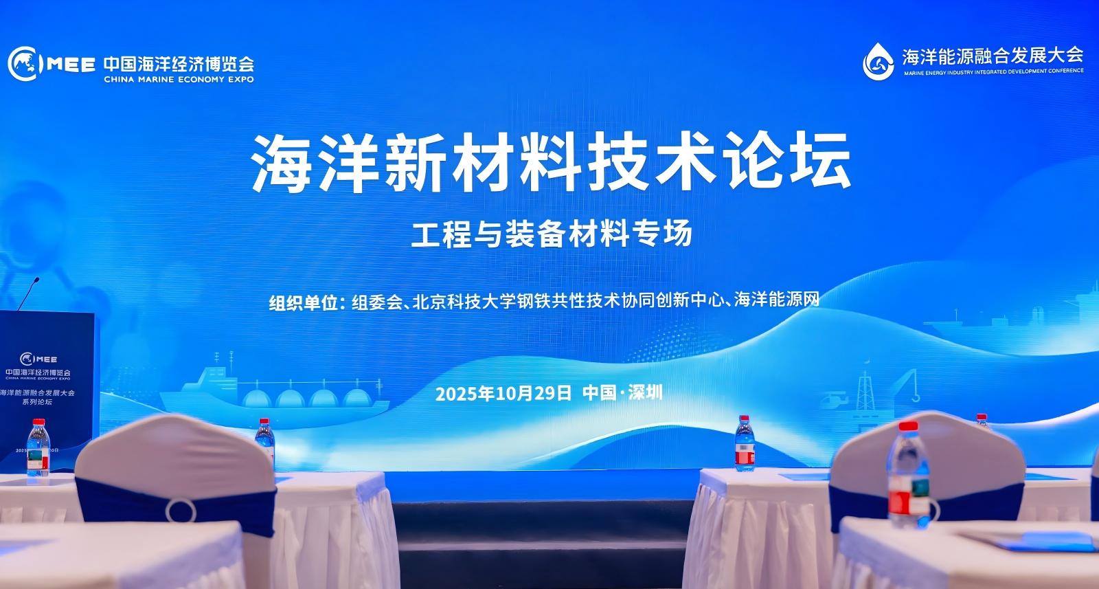 10月29日上午,海洋新材料技术论坛工程与装备材料专场在深圳国际会展中心顺利召开。海洋新材料技术论坛是2025中国海洋经济博览会“海洋能源融合发展大会”的重要系列论坛之一,分为工程与装备材料专场与防腐技术专场。其中工程与装备材料专场由北京科技大学钢铁共性技术协同创新中心、大会组委会及海洋能源三方共同主办,吸引了来自国内高校、科研院所及骨干企业的300余名代表参会。北京科技大学钢铁共性技术协同创新中心海洋用钢研究所所长王学敏教授担任专场主持。